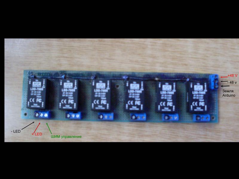 Каждый драйвер безпроблемно запитывает до 12 светодиодов.