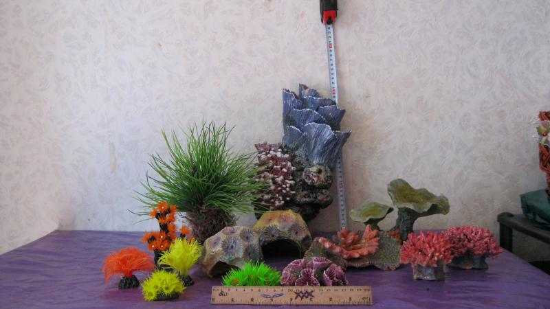 Декорации керамические+силикон(которые яркие:зелёные,желтые,оранжевые)