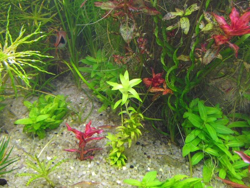 Так же по причине скачка напряжения прекратилась подача СО2 и остановился внешний фильтр. Аквариум находился в офисе и увидел только в понедельник во второй половине дня. Свет жарил более 1Вт/л поэтому улетел в сильную водорослевую вспышку, все растения покрылись мелкими волосками и начали деградировать. Реально я такого не видел никогда, до этого шикарный аквариум и красивые здоровые растения превратились в что-то страшное. Верхушки дидиплиса поотмирали и посерели половина куста развалилась на отдельные фрагменты, ротала валиха из красивых пышных ёлок превратилась в жалкое подобие полностью облепленное мелкими зелёными водорослями. Большой куст роталы тигр полностью скрючился, нижние листки побелели и покрылись рваными «ранами», верхушки рахитировали, рост прекратился. Пострадали также лидвигия куба и торнадо, валлиснерия нана, лимнофила ароматика, эхинодорус нежный рубра, ситняг.