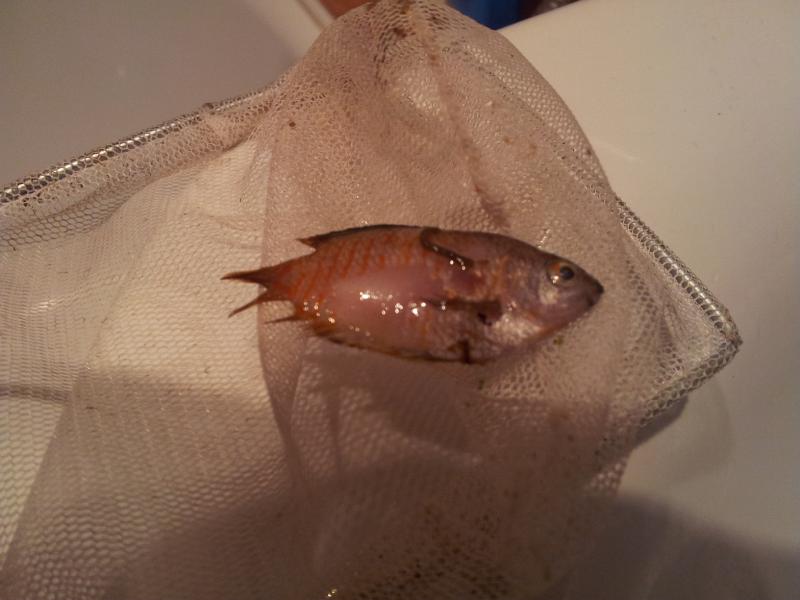 Но уже есть маленькая беда с рыбкой...((( Умерла лялиус (гурами красная) почти не осталось плавников, брюшко без покрова и вздутое...