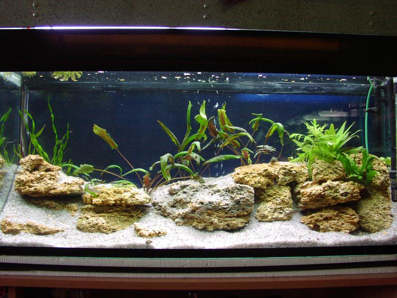 Меня сейчас посещает мысль, что всё таки нужно было не всовывать крипты и гигрофилы, а остановится на валиснерии, роголистнике и перистолистнике, что соответсвует растительности Танганики. Т.к.из за большой минерализации воды там практически больше ничего не растёт (возможно я что то упустил). Скорее всего со временем оставлю только валиснерию.