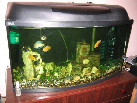 Предидущий был старый обычный аквариум, а так как я перезжала в новую квартиру, купила новый с выгнутым стеклом. Но фактически ничего не поменялось.