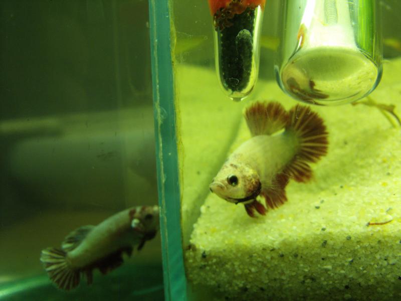 ПС Плавники они друг другу порвали немного. Надеялась вместе держать, но они сразу в драку полезли. Пришлось рассаживать.