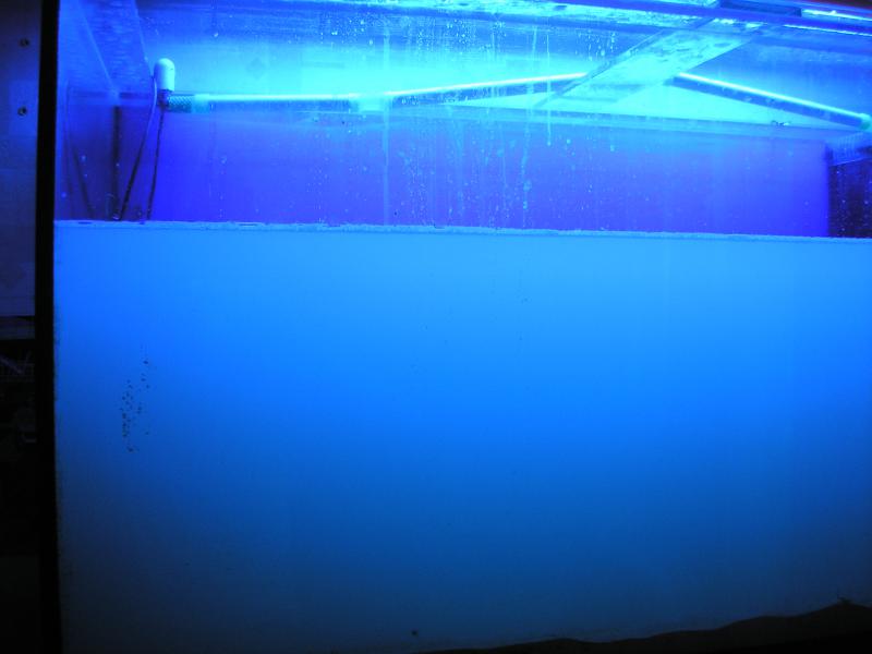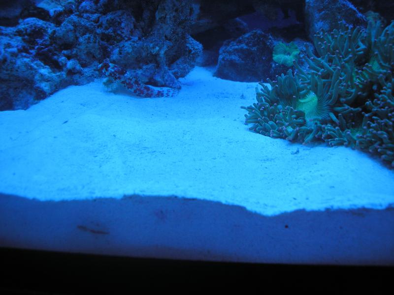 В первую очередь возвратную помпу зациклил на фраговик,аквариум получился отключённым от сампа,помпы течения выключил.Потом были вытащены и отсортированы все камни.ИП в одну кучу,ЧМ на мусорку.В одном из ЧМ ЖК сидел огромный краб 4-5см в диаметре.Все рыбы и ЛПСы были отсажены в фраговик,остальная мягкота по баклажкам и вёдрам.Через шланг 3/4" в бочку извлёк песок и вместе с ним ушло примерно 180л.воды  Грязи в песке было очень много,поэтому мысль о том, чтобы воду отстоять и вернуть обратно,отпала мгновенно.Заготовленной воды явно не хватало, и я сразу поставил набирать ещё одну бочку осмосом.Дальше по плану было строительство горок.Занятие,как известно не простое,да и сверлить некоторые СРК оказалось не просто.После того как Риф был собран,я приступил к засыпке песка.Как бы аккуратно я не пытался его засыпать,муть поднималась не слабая.После засыпки первого мешка я уже не видел куда сыпать остальные 2 мешка  После засыпки всех 3-х мешков,на ощупь,рукой разровнял его по дну.Вылил пакетики Био магнезии(были внутри каждого пакета с песком)потом StartUP, включил помпы течения и начал потихоньку добавлять свежезасоленную водичку.К вечеру водичка немного просветлела и я поместил все мягкие кораллы в аквас.Рыбы в отсаднике чувствовали себя хорошо,никого не обсыпало.На утро вода была прозрачной,но присутствовала лёгкая дымка.Рыбу пересаживать не рискнул,тем более,что до полного заполнения акваса не хватало ещё литров 80.На следующий день аквас был заполнен полностью,кораллы чувствовали себя удовлетворительно,вода была прозрачной,параметры в норме и я переключил возвратную помпу в обычный режим.Пошла циркуляция через фраговик с сампом.Рыбасики никак не отреагировали на это дело.Выждав часок(чтобы вода полностью пошла через самп)начал пересадку рыбы обратно,в свой просторный дом.На данный момент рыбы кушают,кораллы чувствуют себя хорошо.Пеочек слегка покоричневел,пенник заработал,дело пошло
