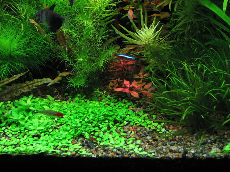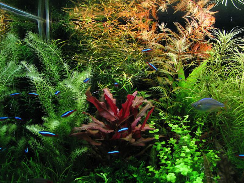 200 литров. Параметры воды Gh 10, Кн 5-6, Рн 6.5, свет 9.5 часов 160 W + отражатель парабола лампы осрам 3000К, 2-10000К, 1 гролюкс 8500К, удо нират 20 мл/л.неделю, К-20 мг/л.неделю, Фосфат 3.4 мг/л.неделю Fe 0.2 мг/л.неделю, микро по В 0.025 мг/л.неделю.