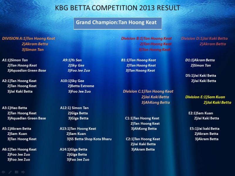 448 Show Betta Entries from Malaysia, Singapore, Thailand and Indonesia.