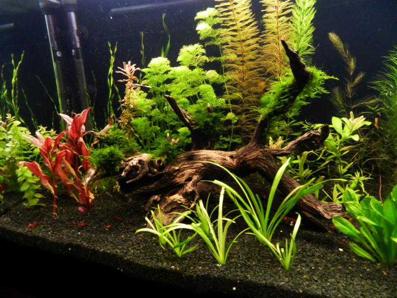 Растения потихоньку растут, появилась мелочь креветок и водоросли кое-где появляются.