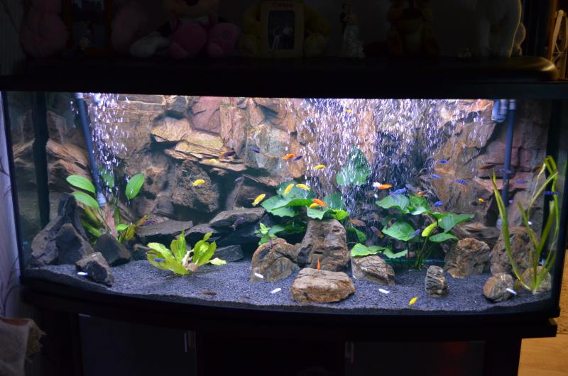 но честно говоря глядя на своих нерестящихся малавийцев - немного смутно представляю будущее ваших. они делят аквариум на участки и потом самкам с икрой негде укрыться ( у меня они отсиживаются именно в гротах и норках) возможно стоит добавить камней? лично мое мнение...
