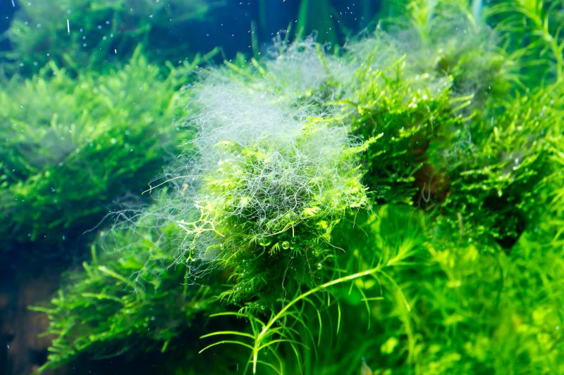 Это у тебя нитчатка,прошел перекос.Опиши свою акву подробней,какой свет,продолжительность светового дня какое удо вносишь и т.д.Можешь сейчас взять в шприц 5 мм набрать перекись и в каждую шапку мха местами обколоть.