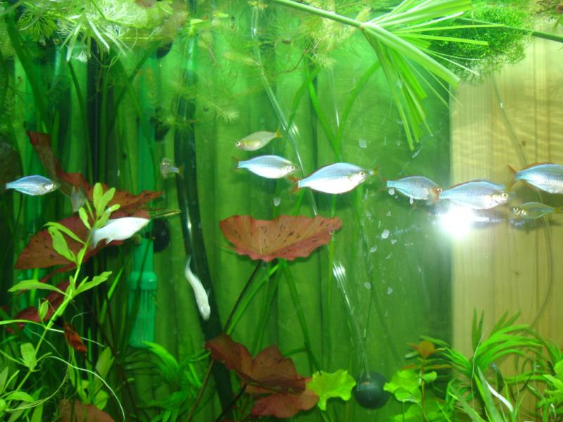 В аквариуме планирую держать стайку неоновых радужниц как основной вид + понемногу всяких прочих разных рыбок + креветок по максимуму. Стайка сейчас живет в 60 литрах, ждет переезда.