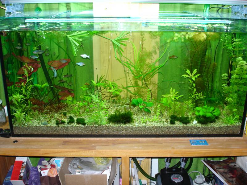 Благодаря помощи и советам 3 форумчан (-паша-, astep, AIIPEJIb) аквариум обзавелся растениями и обрел такой вид.