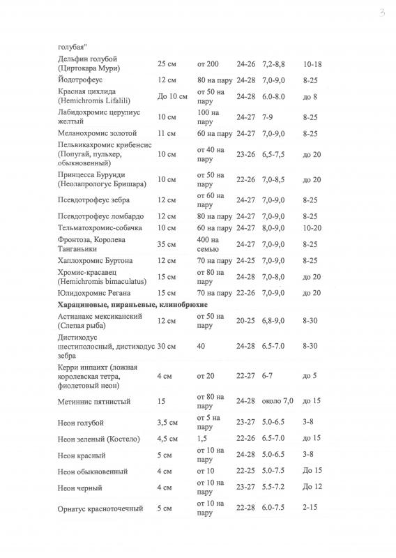 Дополнительно к обсуждению прилагаю таблицу для содержания аквариумных рыбок, она может пригодиться и Вам и другим участникам форума.