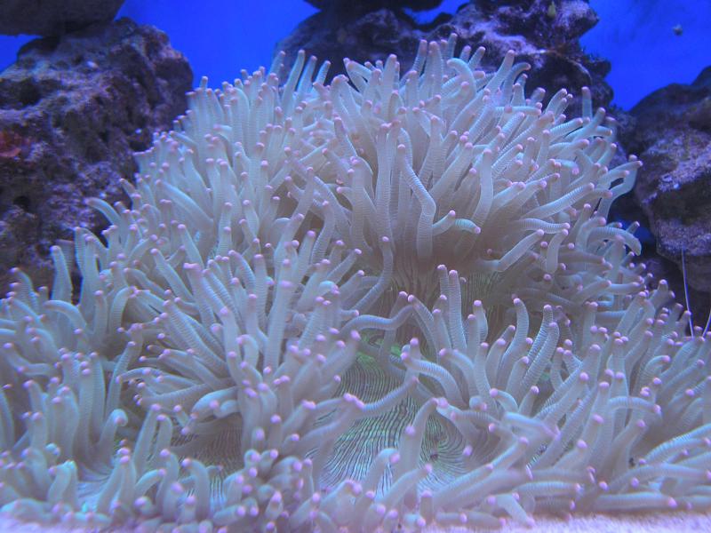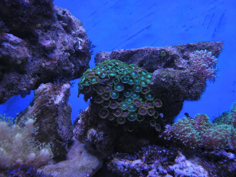 Вот и я перешёл на ЛЕД светильник,сделанный Андреем (airsoft)Длина 130 см. ширина 25 см. 28RGB 12RG 14UV Раньше,когда переходил с Т5 на МГ+Т5 живность долго стрессовала.Приходилось МГ поднимать на 30-40 см. над водой,закрывать лампы бумагой.В ЛЕД светильнике,благодаря контроллеру эти проблемы решаются очень просто.Расстояние от воды до светильника 6 см.Начал с 35% мощности белого и синего каналов,красный и зелёный были выключены.Остановился на 65%-белый,синий-60% Красный(660nnm)-40% зелёный-25% это с 12-00 до 18-00 дальше всё плавно убывает. Температура светильника в пике 28.5 градусов,радиатор холодный.На данный момент живность чувствует себя прекрасно.Зоантусы стали ярче и детальнее видны точечки на них.Саркофитон стал пушистее и нога стала толще,такое впечатление,что он набрал в себя больше воды.Короче говоря, абсолютно все кораллы преобразились в лучшую сторону  Вечернюю съёмку ещё не освоил
