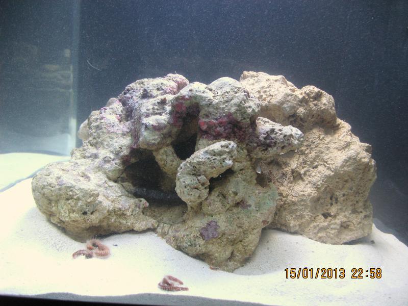 В аквариуме засолена вода 33 гр. на 1 литр+"живая" вода (10 литров).
