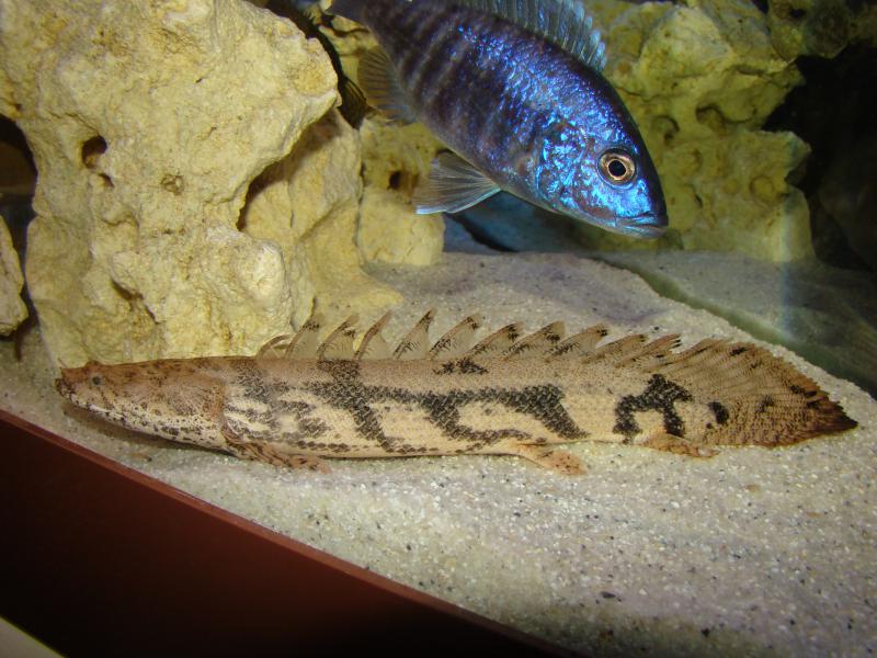 Являюсь обладательницей полиптеруса около 8 месяцев. Но произошло это случайно. У меня аква на 400 литров с малави и еще некоторыми рыбсами.(Это мой первый аквас) Очень хотела каламоихта. Но в продаже их не было. Как-то заехав в магазин за кормом, увидела в аквасе компанию полиптерусов (я тогда и слова такого не знала) и двух каламоихтов. Знакомый хозяина магазина, или решив сменить население банки, или вообще от аквы избавиться, выставил своих питомцев на продажу ( около 10 сенегалов, 2 калама, и один полик песочного цвета с черными пятнами-разводами). Муж на последнего запал со сташной силой. Хозяин магазина сказал что это полиптерус Дельгези.