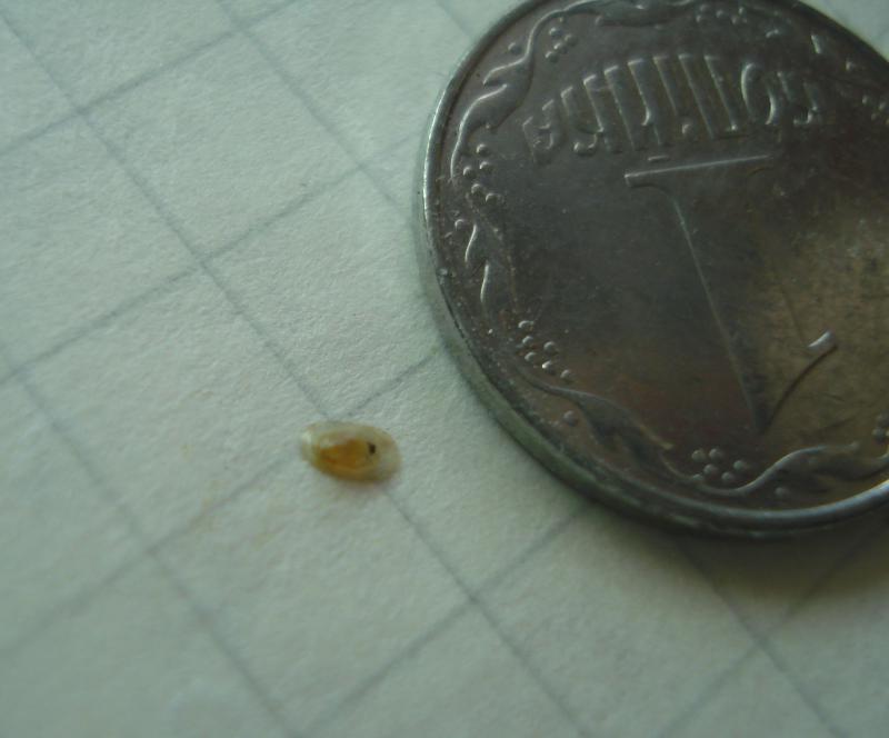 Вот такое выловил у себя, размер 4-5 мм, серенькое (на фото баланс не могу скорректировать). Похоже на теодокус, но неуверен.