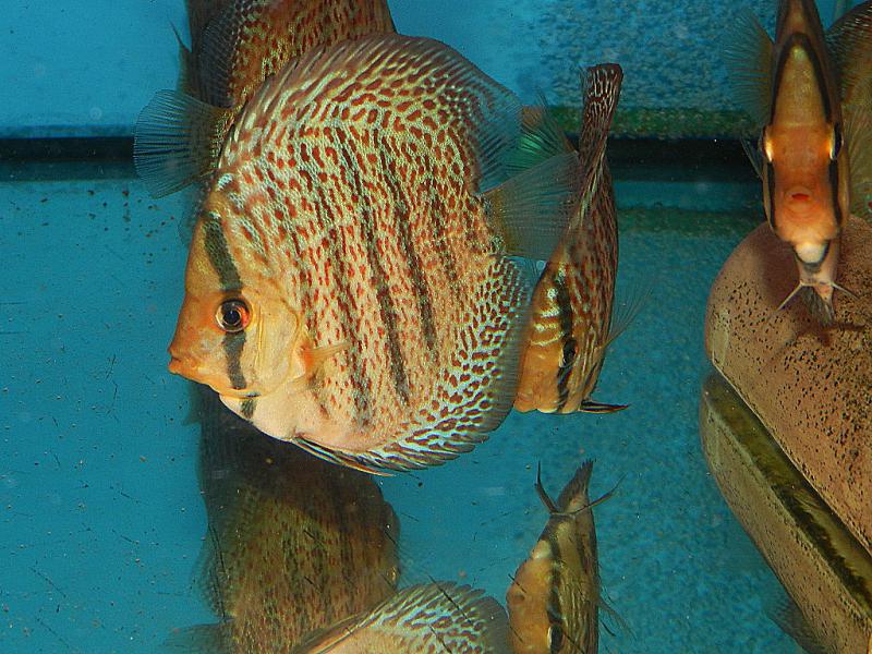 Пошли на нерест Красный Туркис(покупал как линия от Пивоварского у Олега АзовДискус)только они у меня не такие красные как у Олега почемуто.Вода немного голубая -это из за синьки.