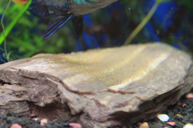 Щоб не створювати нових тем напишу тут. Ситуація наступна, було куплено у розводчика 14.02 пара акар розміром самець - 12см, самка - 9см. вік оріентовно 8-12 місяців. Акари підзатянуті так як жили в комуналці. Самець ганяв самку і вона ховається постійно за фільтром. Так от сьогодні самець з самого ранку розчищає плоский камінь а самка далі за фільтром... У самця зявився яйцеклад  Світло в акві горить з переривом в обід на 2год. так от включається світло а на камні ікра уже лежить і самець її стереже відганяючи і самку в тому числі яка і далі сидить за фільтром..Фото додаю.