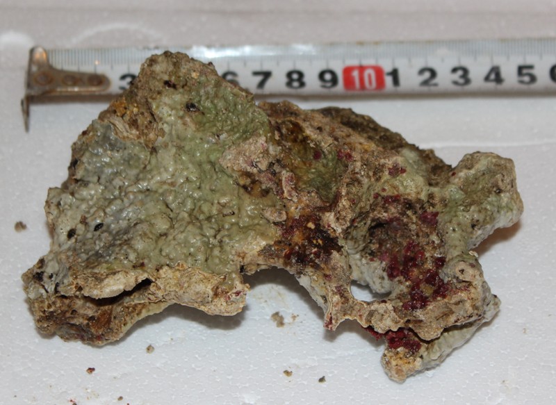 для сравнения кусочек камня Марченкова который передерживался у меня на естественном освещении почти без течения и был приобретен приблизительно в тоже время что и пришел камень AROWANA