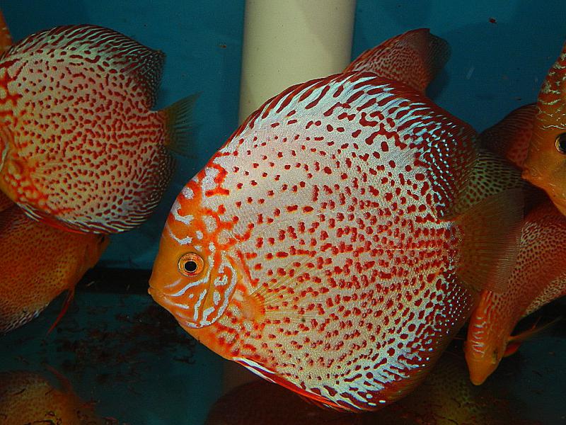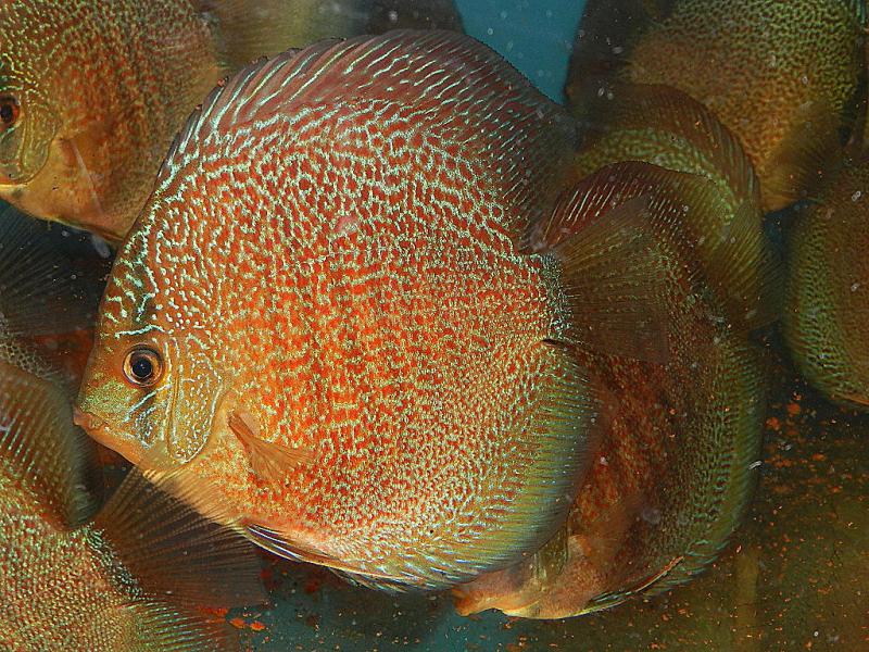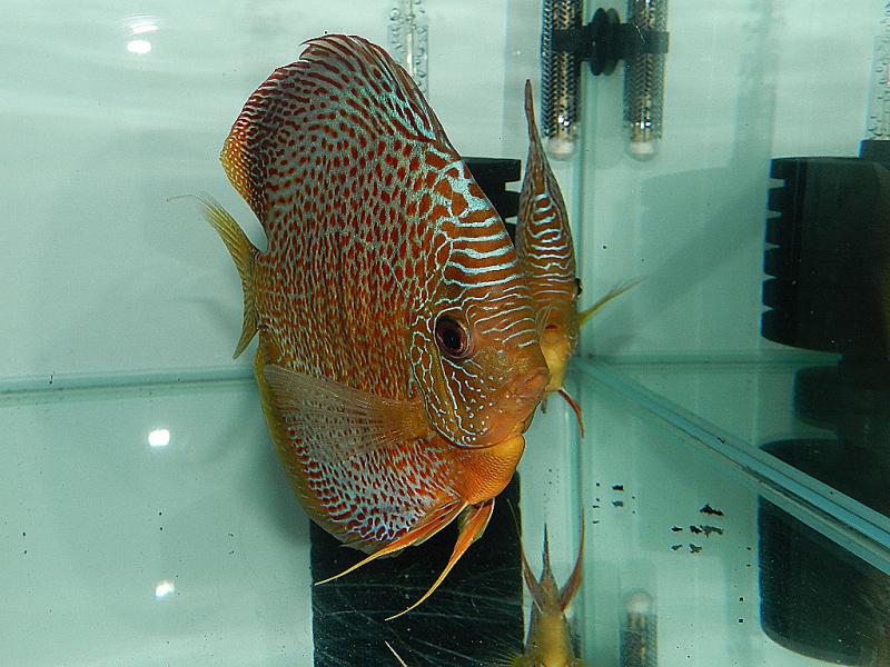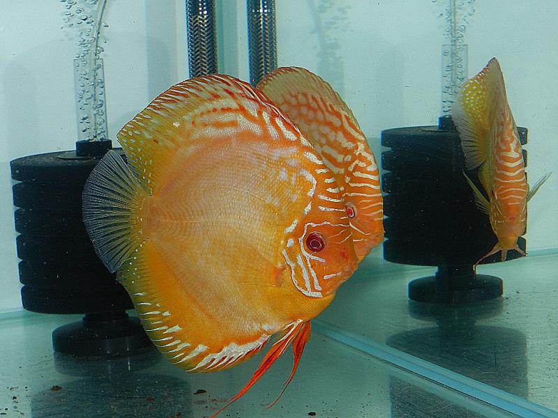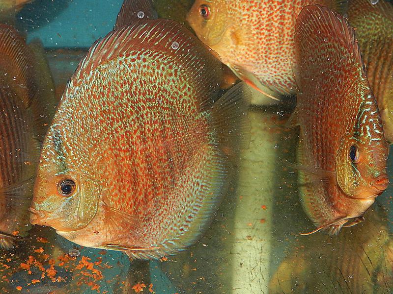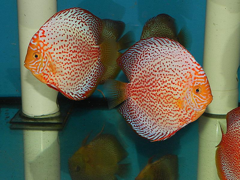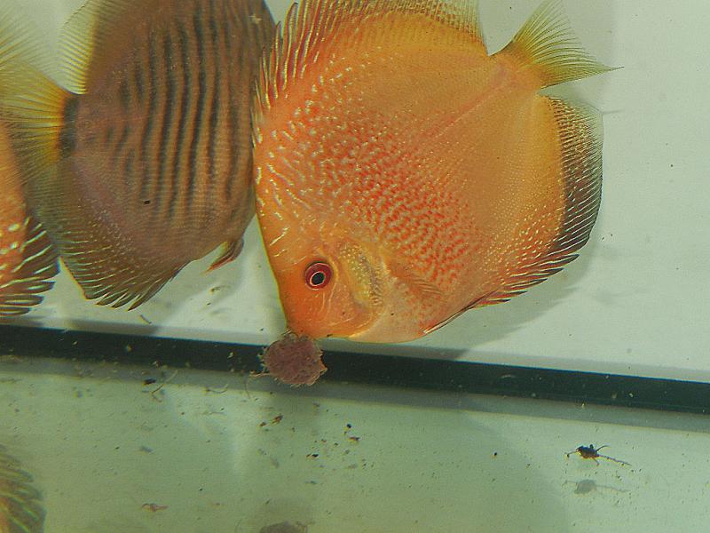 Пошли на нерест Красный Туркис(покупал как линия от Пивоварского у Олега АзовДискус)только они у меня не такие красные как у Олега почемуто.Вода немного голубая -это из за синьки.