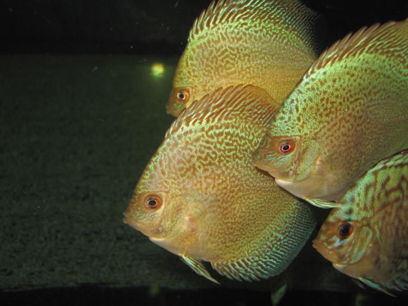 Golden Leopard . Слабый малек у этой рыбы , возишься с ними как с первыми своими дискусами , (может , сказывается близкородственное скрещивание , а может мне так "повезло" ?) Это третий по счету нерест , можно уверенно говорить о расщеплении 40 на 50 (желтых / синих) .