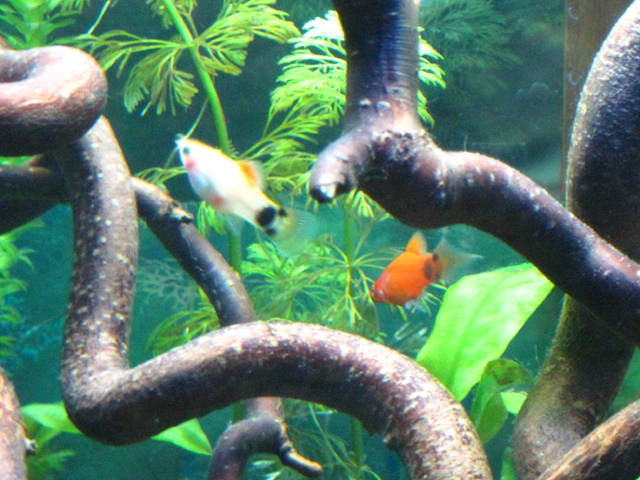 23.02.2013 - Появились 4 сиамских водорослееда и 7 пецилий "медвежие ушки" (2 красных и 5 желтых)