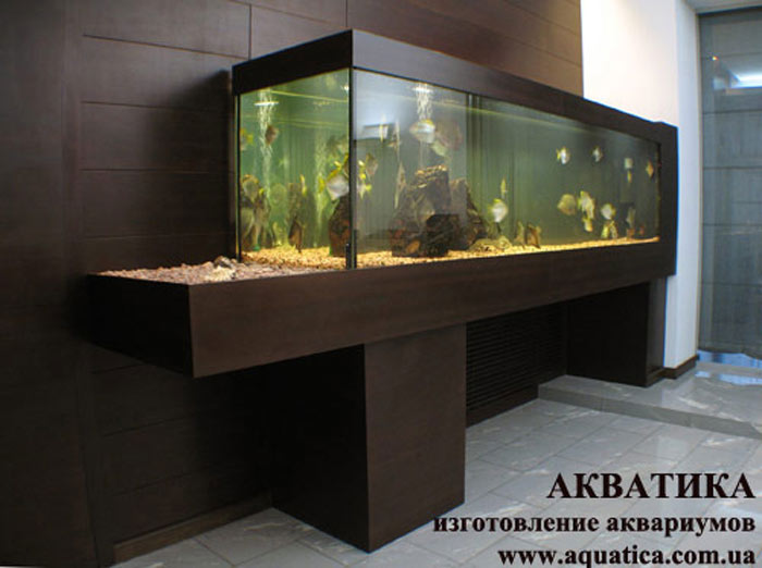 На фото , аквариум с высотой набора воды 1200 мм. и длинной 2500 мм.