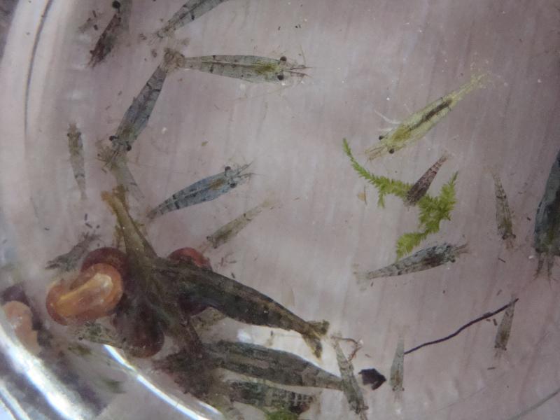 Неокаридина пальмата (Neocaridina palmata,Так сказал продавец) Шустрые, активные, практически неубиваемые ребята. в количестве 35-40+ буду вылавливать еще по мере вылезания из засады)) Верю в реинкарнацию по этому в унитаз спускать не стал))) Может эстетической ценности и не имеют, но в качестве чистильщиков микроскопической флоры очень даже ничего))