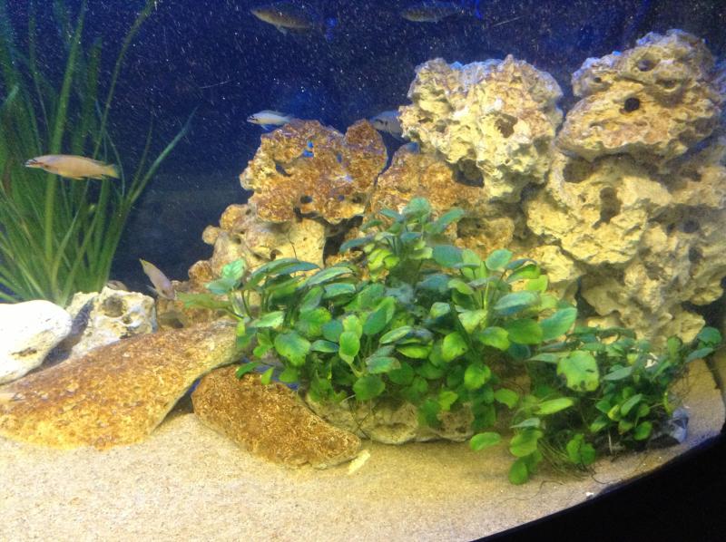 Итак, рыба в аквариуме и возникло много вопросов, с которыми сталкивается каждый новичок. При запуске, на первый взгляд, фронтоза освоилась, заняла всю площадь аквариума. Перечитав обмен опытом форумчан, дополнительную литературу, все же присутствует некоторое волнение. Запуск состоялся вечером, свет одна лампа Sylvania Grolux T8 36 Вт, наполовину перемотанная фольгой. Заметила на следующее утро, что фронтоза прячется по гротам, передвигается по аквариуму скачкообразно (точно как ихние соседи боции-клоуны). Аквариум находится в холле и движение мимо естественно присутствует, от чего рыба шугается. На артемию реагировали в первый день, сейчас, сплошное безразличие. Возможно, так проходит адаптация?....