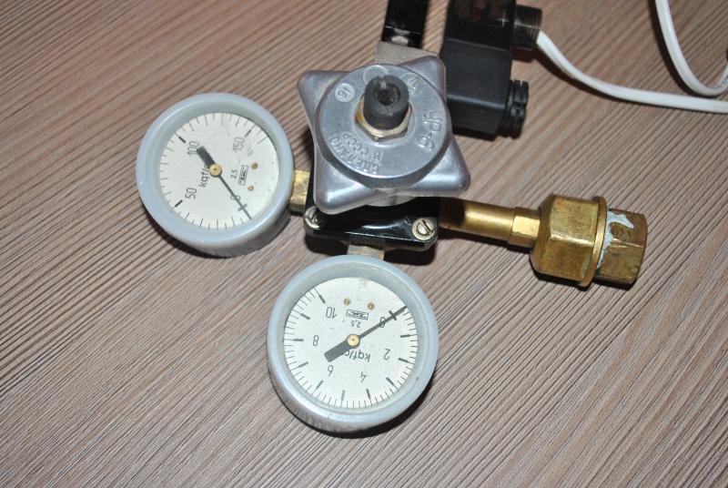 Со2 редуктор - УР6, переходник на малую резьбу, э\м клапан на 220в, и кран тонкой настройки.