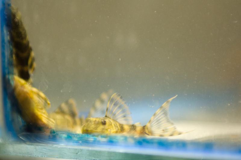 Да, моделями сомики точто не станут, что-б хоть как-то их сфотографировать, пришлось приглушить свет, так они стали менее пугливы, но на месте сидеть напрочь отказываются, пытаясь забиться в самый укромный угол.