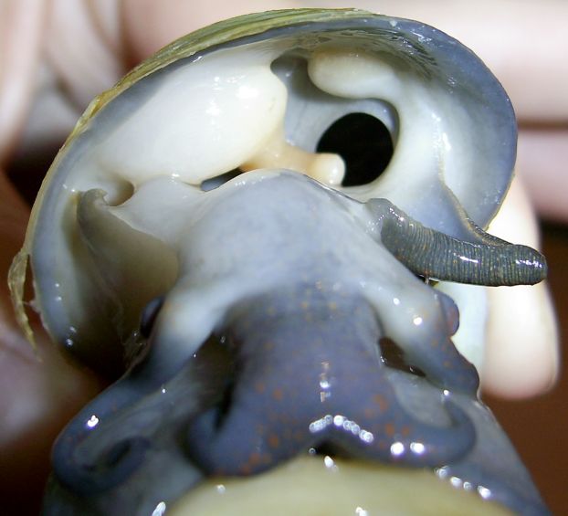 Делается это так: берется ампуляха за панцирь и поворачивается к нам подложкой (или дверцей раковины скорее, т.к. она уже спрятаться успела) головой вверх. Ждем, ампуляра открывает крышку и вылазит. Слева (как смотрим) нужно рассмотреть в мантии некий отросток (не путать с трубкой для воздуха, которая справа и с усиками ). Рассмотрели??? Поздравляю, у вас мальчишка.