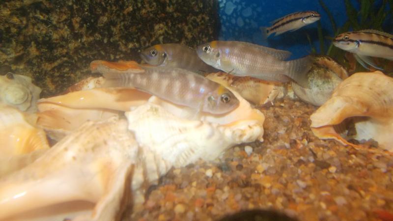 Самец крупнее самок?Пара сформировалась или у них не так как у юлидохромисов,нету крепкой пары?