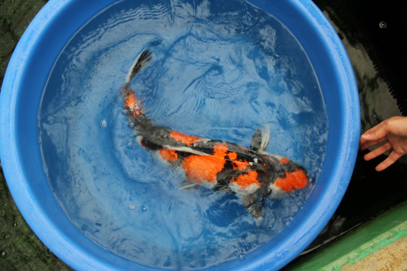 Подменивал водичку сегодня у Шусуиков, высаживать в тазик не стал, так поснимал их полосатые спинки.