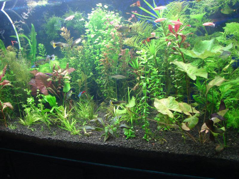 Мой почти 3м в длинну аквасик с молодыми красными дискусами.