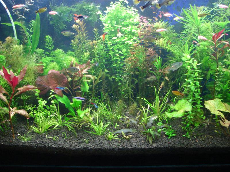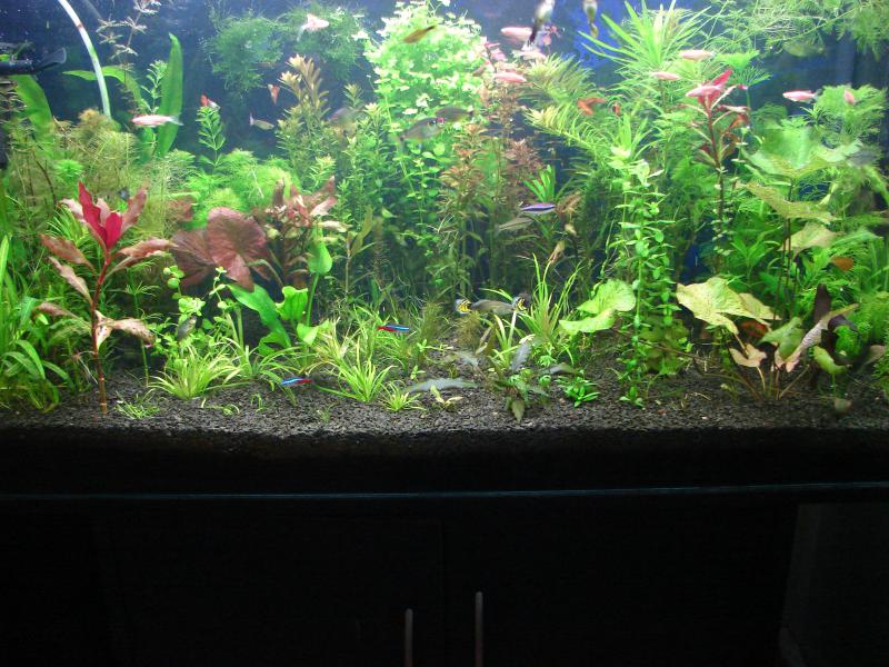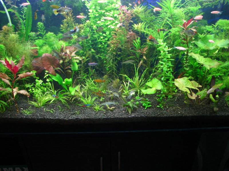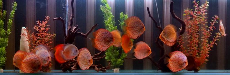 Мой почти 3м в длинну аквасик с молодыми красными дискусами.