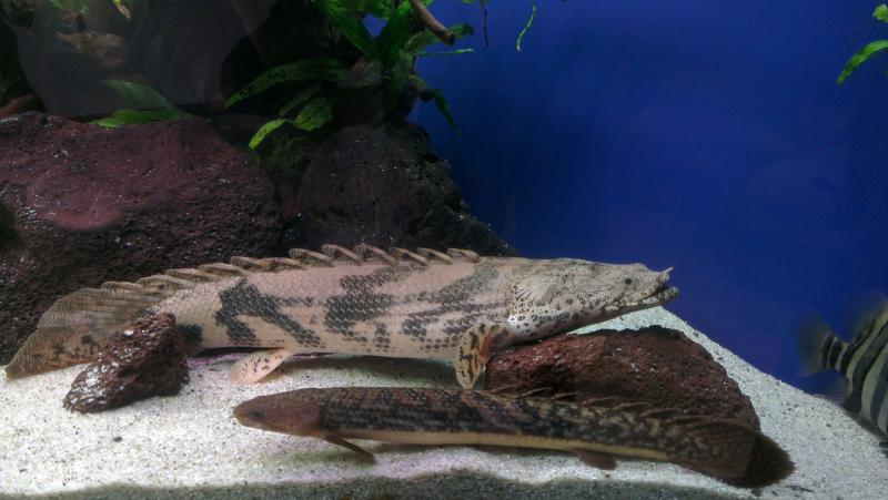 Мечта завести полиптерусов и каламоихтов появилась очень давно, смущал маленький объем и съемная квартира. Но все таки решилась, и планирую покупать аквариум на 200л. Всю харацинку подарила, и сейчас в 72 живут: калабарский каламоихт-2шт, полиптерус дельхези-1шт, сенегальский полиптерус-2шт (один альбинос), и САЕ с анциструсом. Пока полиптерусы от 10-15см, возможно одного сенегальца отдам, присматриваемся друг к другу. В аквариум поставила дополнительный фильтр, и воду подмениваю два раза в неделю. Кормлю, креветкой, хеком, сверчками, кальмарами, иногда живой рыбой.