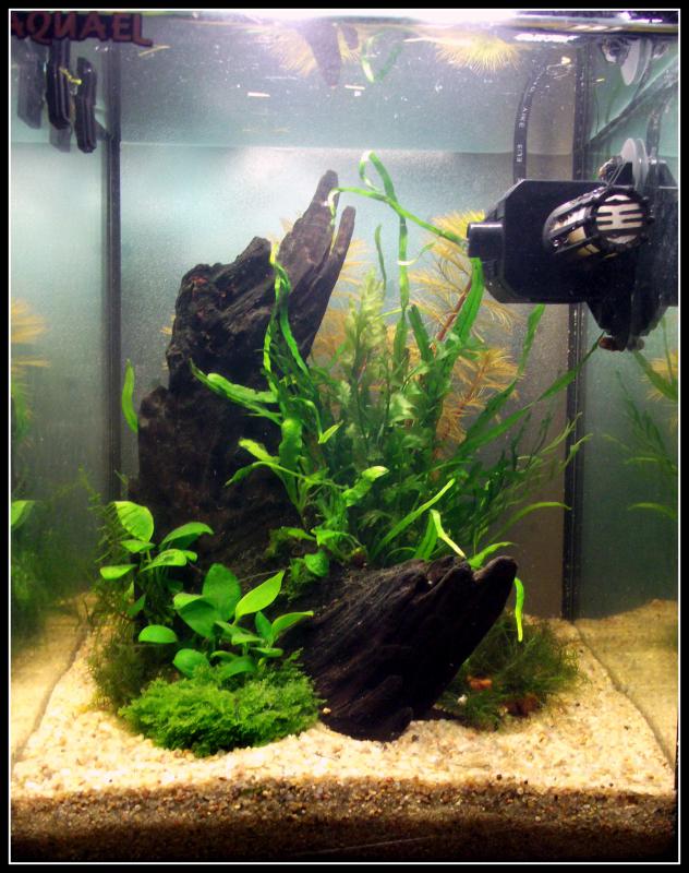 ....И пошло-поехало... Чего-то вынималось, что-то менялось, мелькали пинцеты. полотенца, коряга, растения... Дракон был слегка, пардон, кастрирован, и лишен нескольких анубиасов, которые с удовлетворенной улыбкой и криком "Уряяяяяя!" были пришпандерены на корягу...