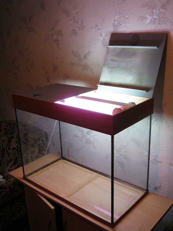 Аквариум 120 л, ДхШхВ – 70х35х50см, качественный самоклей, съемная крышка (3 элемента), в комплект входит осветительная балка на две лампы Т8 с влагозащитными патронами.