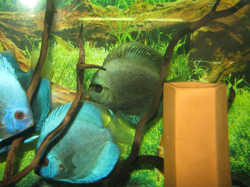 На последнем фото, дискус приобретался как туркис королевский. А почему, он в крапинку? Помесь? Интересно с кем?!