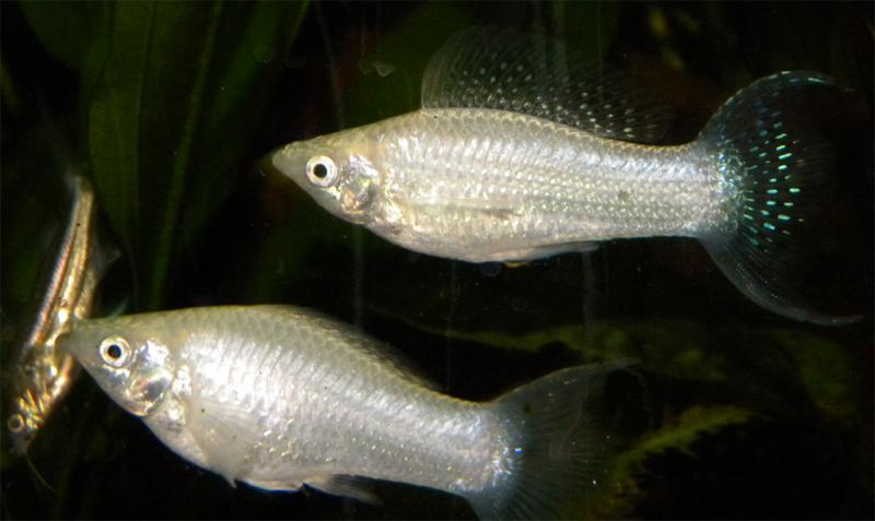 Месяц назад купила 5 моллинезий. Аквариумист в зоомагазине был неопытный и наугад отловил мне этих рыбок. Т.к. я давно не держала у себя живородок, пришлось дома в интернете смотреть кто есть кто. 4 рыбки были с закруглённым анальным плавником, а 1 с заострённым. Получилось, что у меня 4 самки и 1 самец. Посадила их в акву на 50 л. Через несколько дней самец начал гонять самую крупную самочку, остальные по сравнению с ним были маленькие, и он не обращал на них никакого внимания. Да и мне показалось, что у этой самочки брюшко стало полнее. Ну я и обрадовалась, давно хотела уже серьёзно заняться разведением рыбок, а не только для себя. Недели 2 назад я купила дискусов в акву на 150 л. До них там жили мои лабиринтовые, но им пришлось переехать в другую акву. Вскоре диски заболели, и им нужно было ставить дополнительные аэраторы и обогреватели. Т.к. электророзеток у меня не хватало, пришлось на время молли посадить с лабиринтовыми. Всё это время я тратила на дискусов, и только когда они пошли на поправку, я решила заняться остальными. Мой самец молли по прежнему гонял эту самочку. И тут я присмотрелась и поняла.... что за то время, пока я лечила дисков, моя самка молли каким-то образом стала самцом. Хотя я на 100% была уверенна, что это ОНА. Я бы смирилась даже с такими преобразованиями, объясняя это тем, что ничего не понимаю в живородках, но тот самец всё продолжал плавать в паре с неудавшейся самкой. Остальные самки ему вообще побоку, их как-будто не существует.