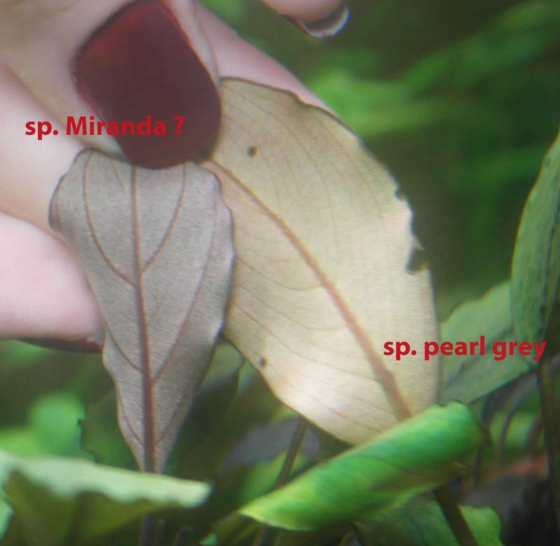 Сегодня внимательно присмотрюсь, попробую сделать фото рядом с pearl gray, но скорее всего вы правы. У меня этот вид совсем недавно, за время пребывания в моем аквариуме, выпустил 1 лист и бутон, я не помню чтоб молодой лист был ярко-зелёным или зелёно-желтым. Скрытый текст