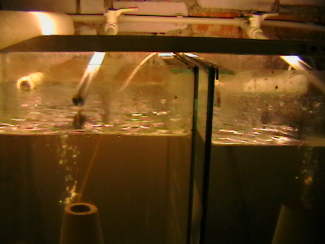 Принцип: скважина- первичный фильтр- обратный осмос- емкость (банка). В банке стоят внутренние фильтра ( так, на всякий случай  ). Пытался сфотографировать, но темновато получилось+ не совсем полноценно ( из-за экономии места все сжато, заставлено). Все завязано на одном поверхностном насосе (всего лишь 250Вт- экономика должна быть экономной  !), только краны переключаются на разную работу- разные трубы. Вода из скважины подается этим же насосом. Находится все в подвальном помещении ( рыба тоже). Глубина скважины примерно около 11м= 2, 5м высота потолка ( до уровня земли)+ 8,5 глубина скважины ( высота столба воды в трубе. все пластик, скважины 3, 5м). При набирании осмоса в емкость стоит таймер времени для отключения насоса. Из емкости вода подается по банкам опять же через фильтр, этим же насосом, после уборки ( долив+ частичная замена)- обычно 2 раза в день. Если нужен какой- то момент подробней или что- то непонятно- расскажу дополнительно. Навороченного электронного оборудования нет, поэтому многие работы ( жесткость, кислотность и еще некоторые моменты) контролируются зрительно.