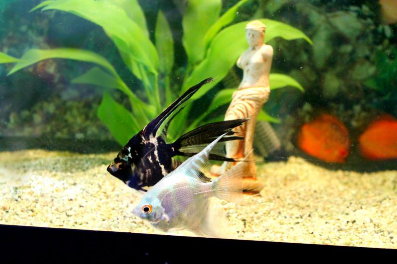 Я теперь никак не могу разобраться: если вуаль и ангел - самец и самка, то почему у них ни разу не было попыток нереститься? А если это однополые рыбы - то почему всё время вдвоём плавают?