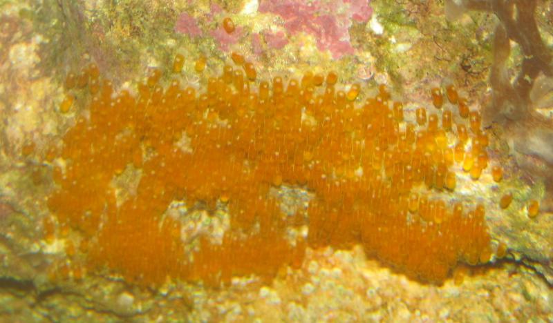Клоуны (Amphiprion clarkii) отложили икру