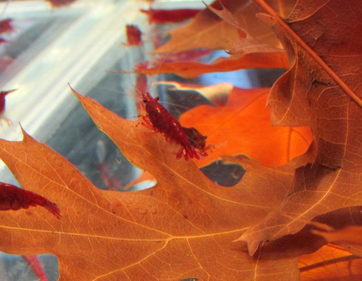 Всю креветку кормлю только этим кормом, иногда бросаю листья плодовых деревьев и ягодные.