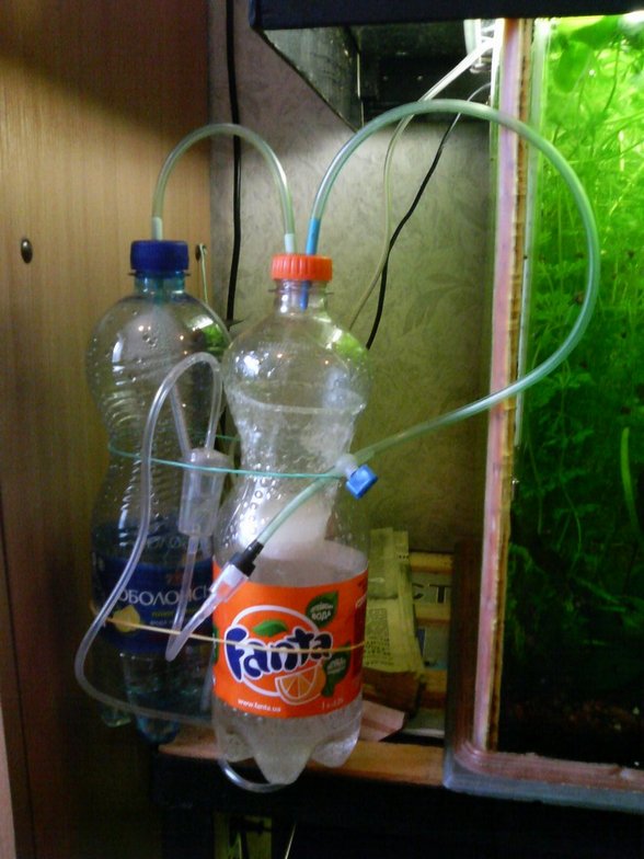 Блуждая по интернету в поисках безопасного и самого дешевого способа подачи СО2, наткнулся на одну очень интересную и простую систему http://www.forum.aquastatus.ru/viewt...p=53024#p53024. (смотри фото)