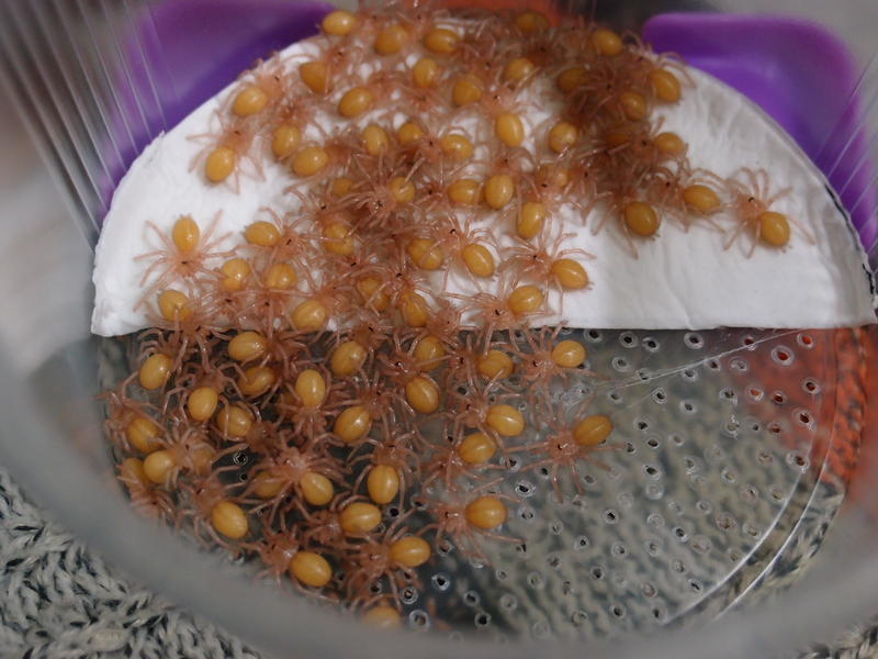 На выходе получилось около 80-ти паучат. Не густо, но зато малыши получились довольно крупными и бодрыми