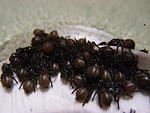 часть потомства была подпорчена, вокруг поналипали живые нимфы, процесс отделения занял около часа