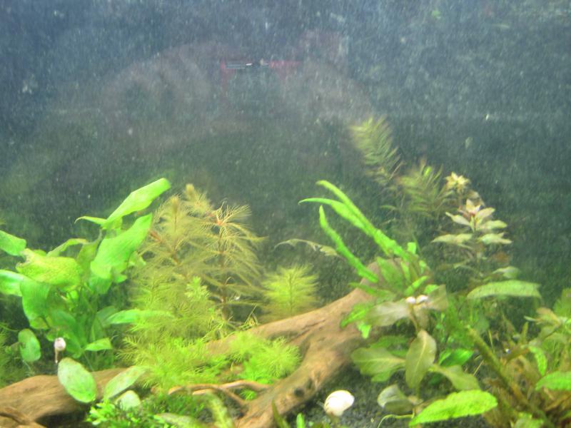 После неудачного запуска - решил перезапуститься. Делал вроде все по правилам: сначала вообще без света, через несколько дней понемногу начал давать свет по несколько часов в сутки и довел до 8-9-ти. С момента запуска прошло две с половиной недели - началась та же история, что и до перезапуска - водоросли. Растения все покупал в отличнейшем состоянии, но несколько штук посадил из той же банки зараженные уже (может быть дело в этом?). На стенках снова начал появляться неприятный зеленовато-коричневый налет. Помогите спасти растючку. Спасибо